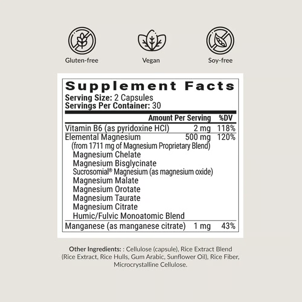 The supplement contains 7 forms of Magnesium, all necessary for a healthy inflammation and stress-free life.